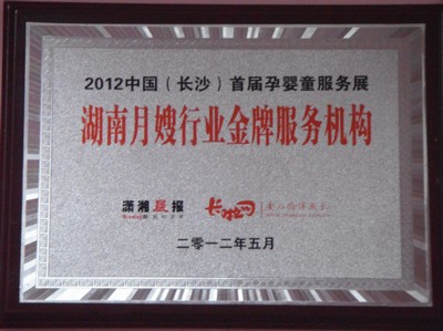 2012年5月在中国(长沙)首届孕婴童服务展上授予“湖南月嫂行业金牌服务机构”