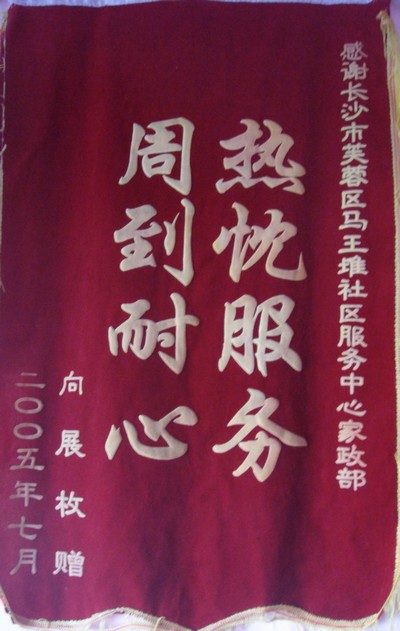 2005年7月向展枚赠予“热忱服务,周到耐心”称号
