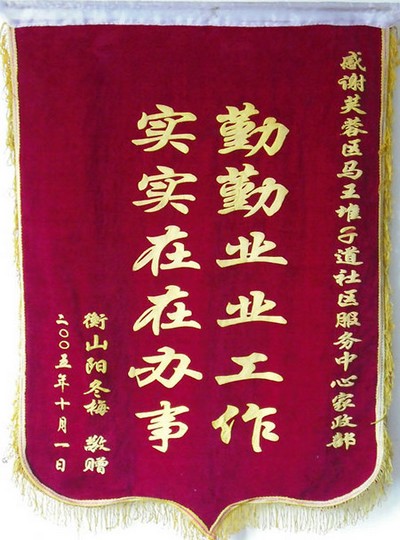 2005年10月衡山阳冬梅赠予“勤勤业业工作,实实在在办事”称号