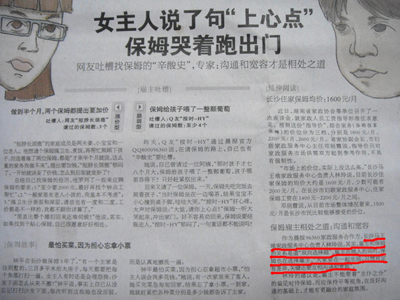 总结自己找保姆的经历,他罗列了一些来应聘保姆的要求:1、至少要2000元,最好再找个钟点工帮忙;2、一般家里有老人小孩的,我基本不考虑;3、搞卫生分表面和深层,清洁也有一度和二度,工价都是不一样的,我都不跟你详算了。